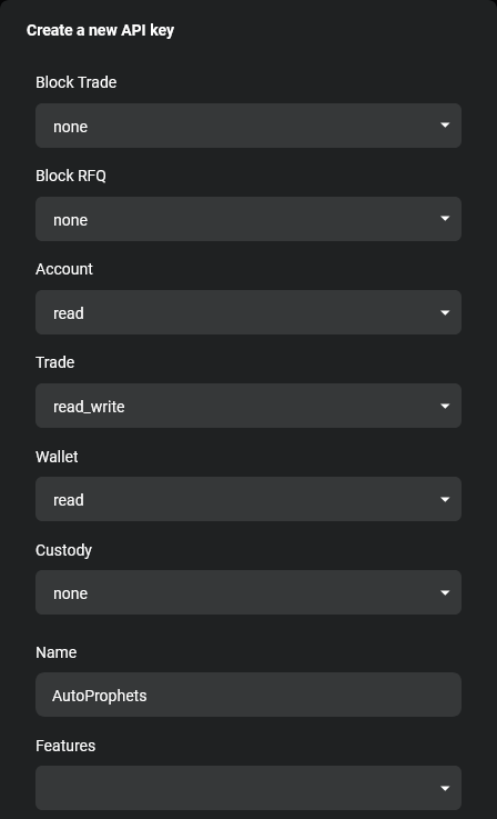 Step 7. Configure API Key Permissions - You will now see the "Create a new API key" form. We need to configure it properly with the exact permissions required for Auto Prophets trading.