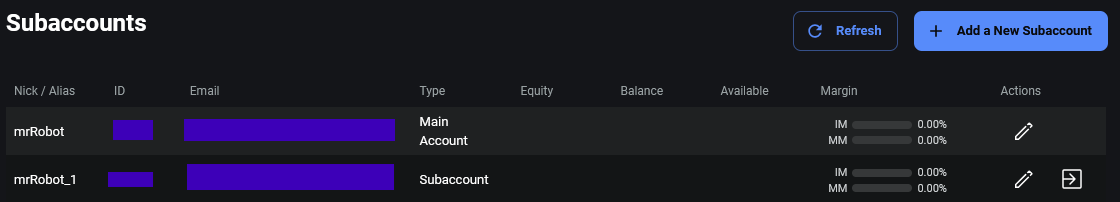 Step 2. Click on "Add a New Subaccount" - You should now see your new Sub Account creation page. Click on the "Add a New Subaccount" button to create a dedicated subaccount for Auto Prophets trading.